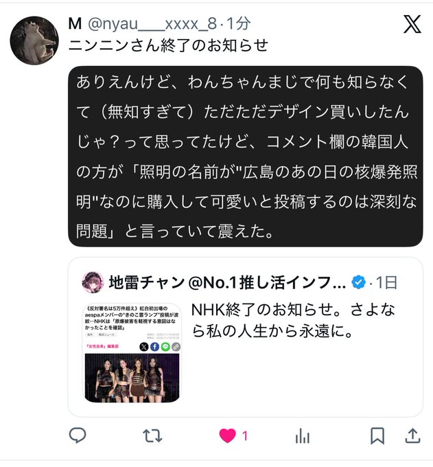 NHK担当者「当該メンバーに原爆被害を軽視、揶揄する意図がなかったことを確認した」